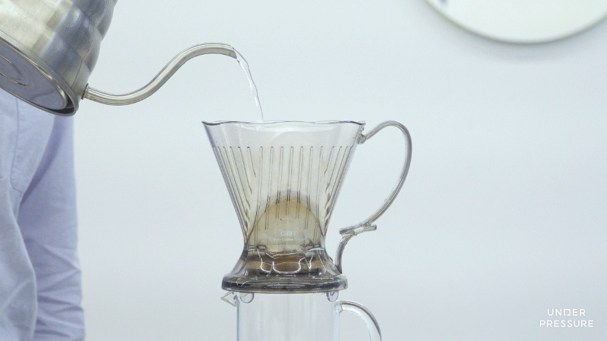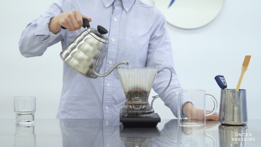 5) 추가로 물 200g을 40초간 부어주세요.
