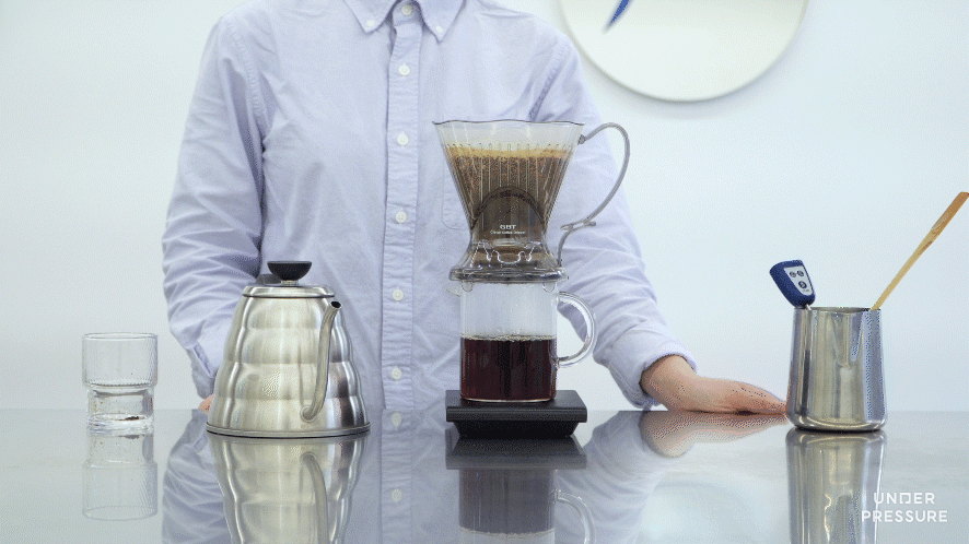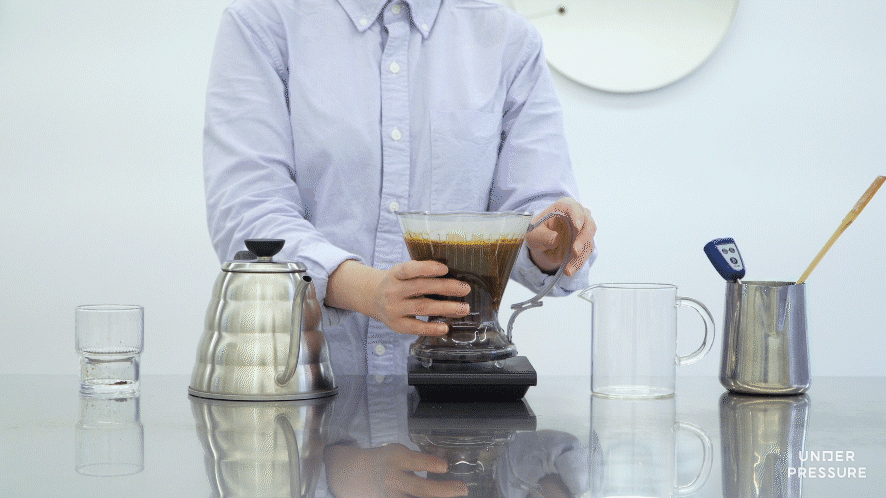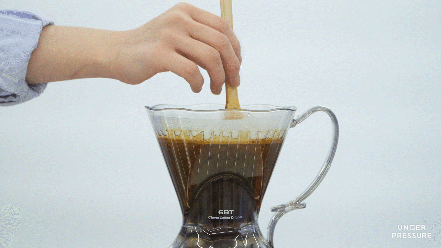 7) 닫혀있던 추출구가 열리면서 커피가 추출되도록 클레버를 서버 위에 올려주세요.