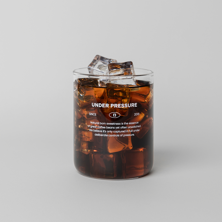 언더프레셔 디자인이 적용된 투명한 글라스 컵입니다.