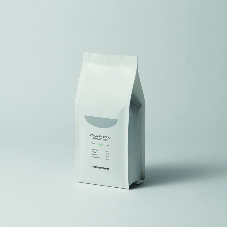 언더프레셔 콜롬비아 디카페인 블렌드 500g 원두입니다.
