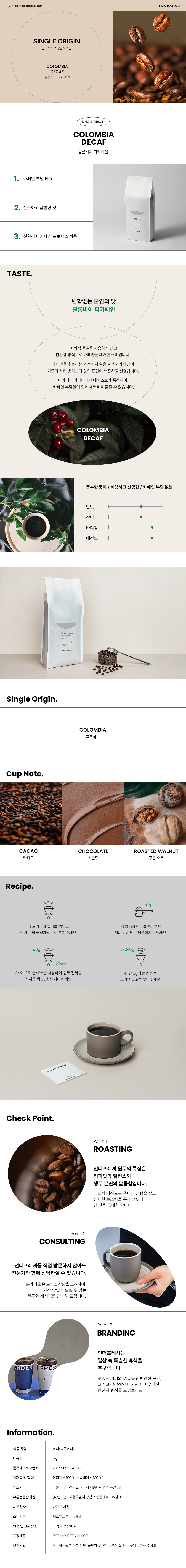 언더프레셔 콜롬비아 디카페인 블렌드 1kg