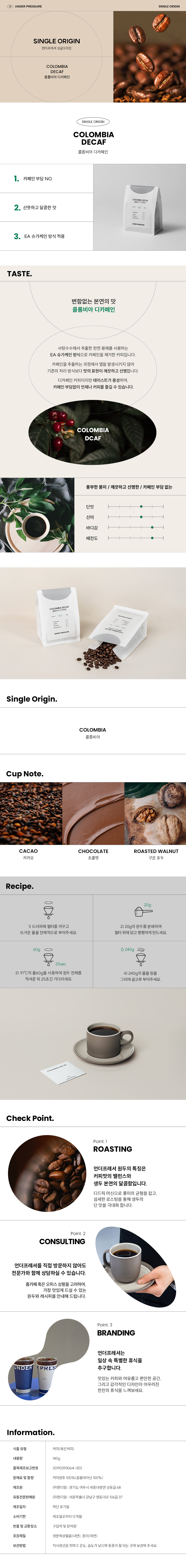 * 언더프레셔 싱글 오리진 커피 원두, 콜롬비아 디카페인 140g 입니다.